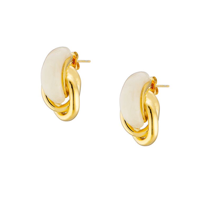 Σκουλαρίκι επίχρυσoι δύο κρίκοι με white alabaster σμάλτο ατσάλι 316L