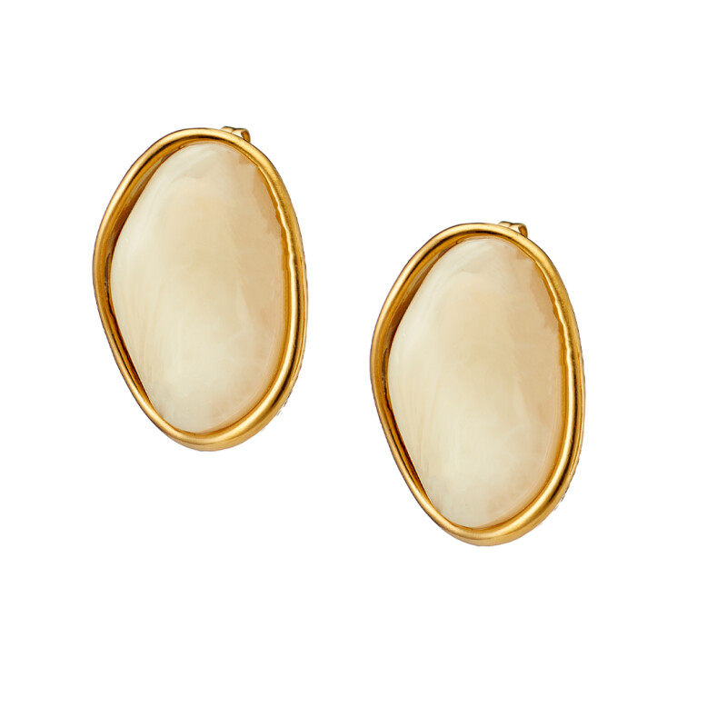Σκουλαρίκι επίχρυσoι δύο κρίκοι με white alabaster σμάλτο ατσάλι 316L