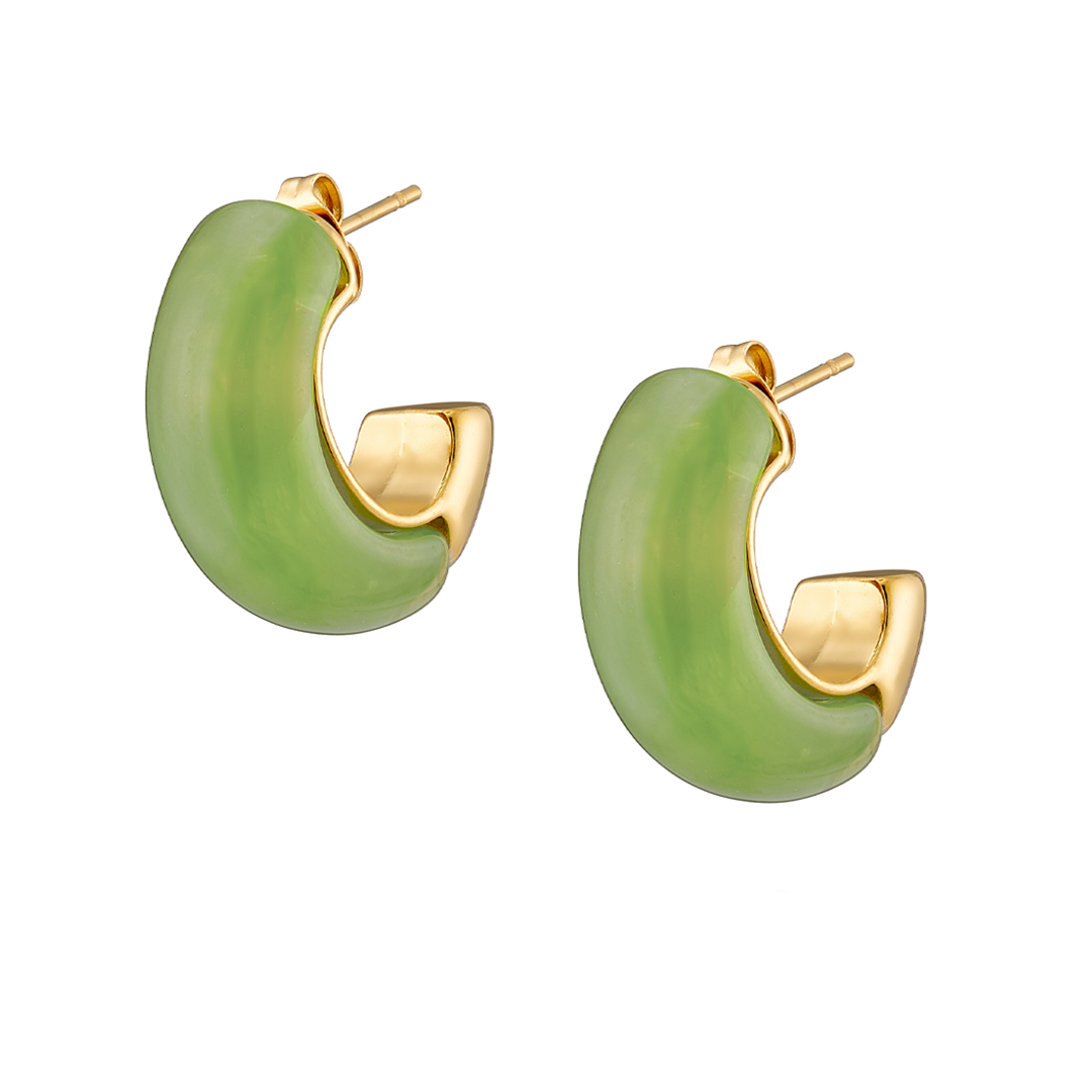 Σκουλαρίκι επίχρυσoς κρίκος με fern green σμάλτο ατσάλι 316L