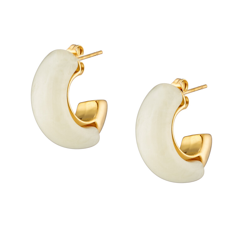 Σκουλαρίκι επίχρυσoς κρίκος με white alabaster σμάλτο ατσάλι 316L