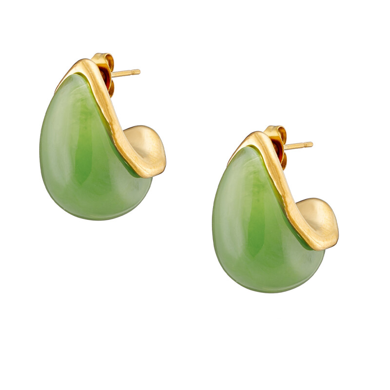 Σκουλαρίκι επίχρυσo κέλυφος με fern green σμάλτο ατσάλι 316L