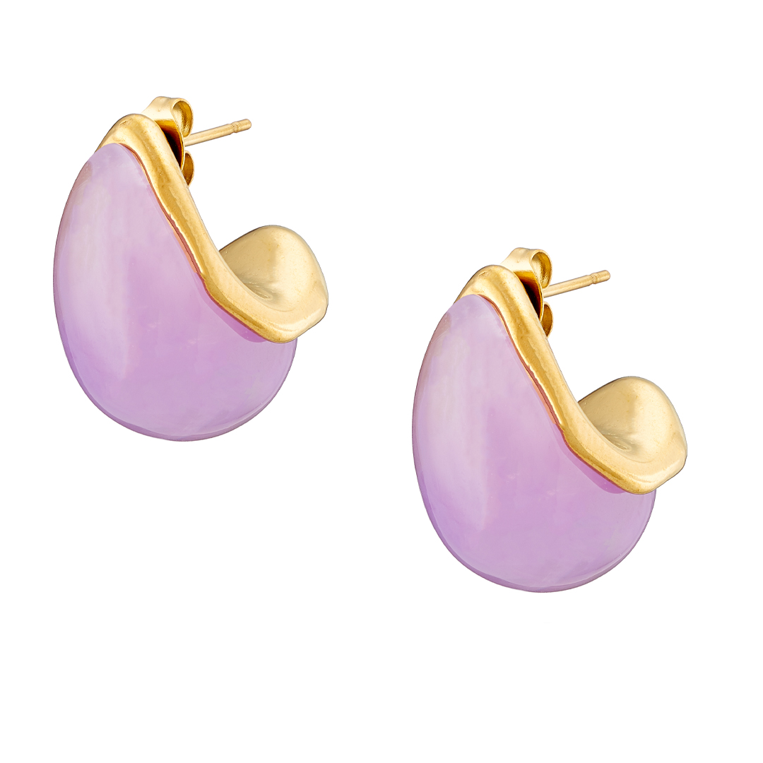 Σκουλαρίκι επίχρυσo κέλυφος με violet σμάλτο ατσάλι 316L