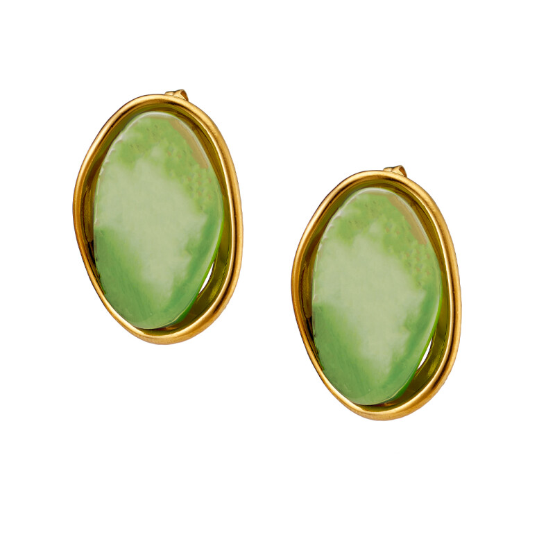 Σκουλαρίκι επίχρυσo καστόνι με fern green σμάλτο ατσάλι 316L