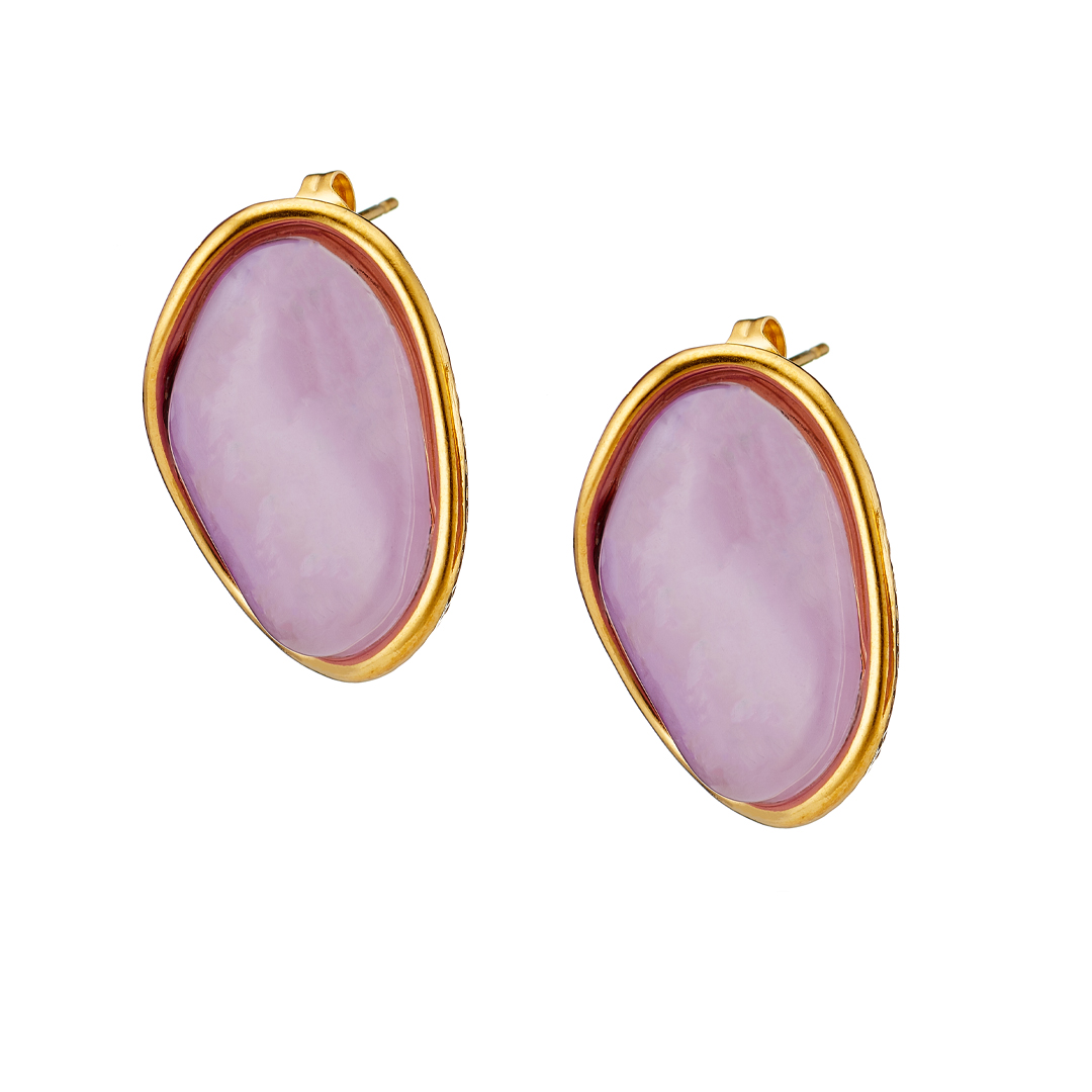 Σκουλαρίκι επίχρυσo καστόνι με violet σμάλτο σμάλτο ατσάλι 316L