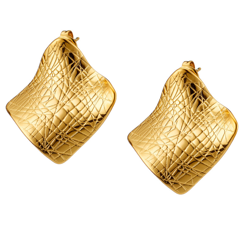 Σκουλαρίκι κρεμαστά επίχρυσα τετράγωνα ατσάλι 316L