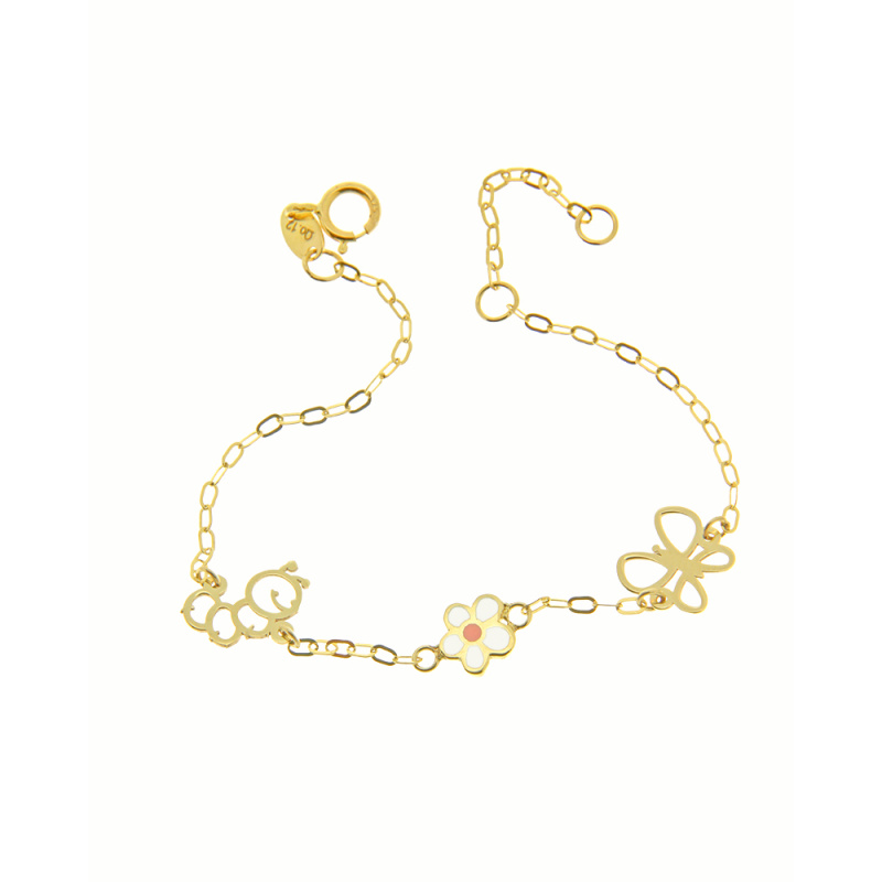 Βραχιόλι με Σμάλτο Μαργαρίτα & Στοιχεία Σκουλικάκι, Πεταλούδα Κ14 0.90gr