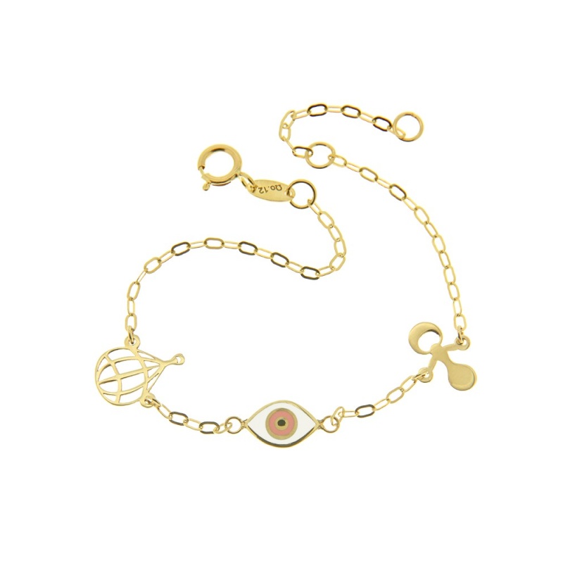 Βραχιόλι με Σμάλτο Μάτι & Στοιχεία Πιπίλα, Αλεξίπτωτο Κ14 0.90gr