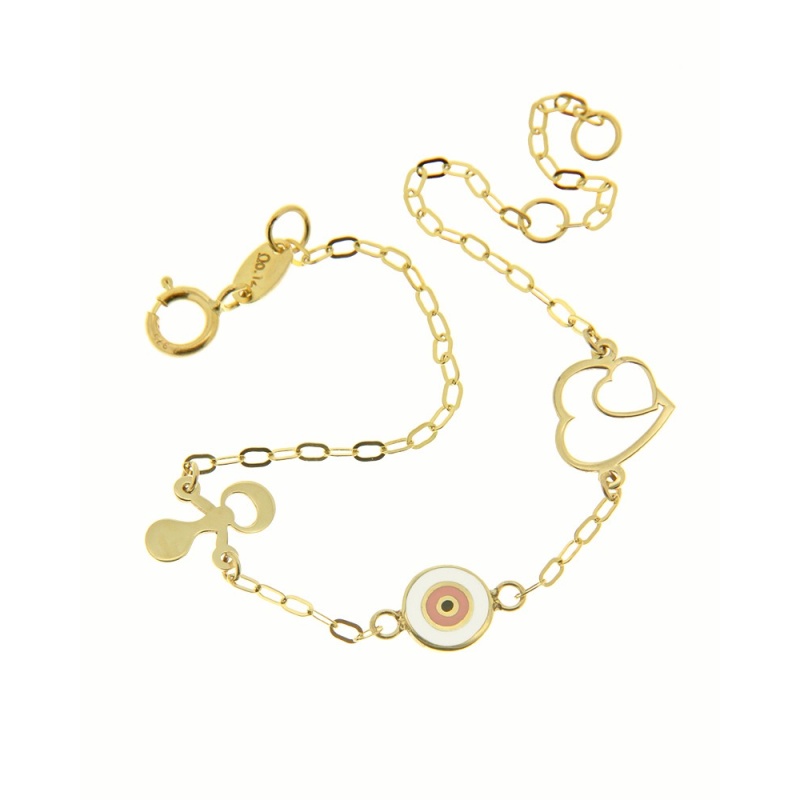 Βραχιόλι με Σμάλτο Μάτι στόχο & Στοιχεία Καρδιά, Πιπίλα Κ14 0.90gr
