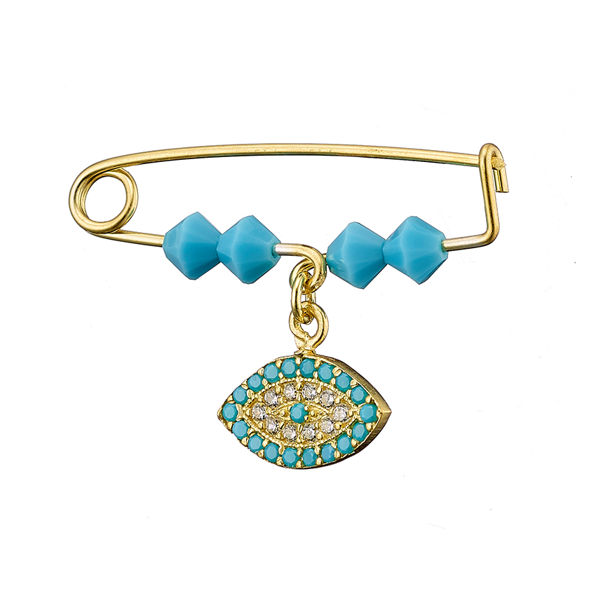 Παραμάνα ασήμι 925, επιχρυσωμένη με ματάκι & γαλάζιες πέτρες