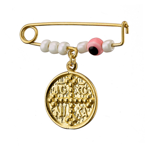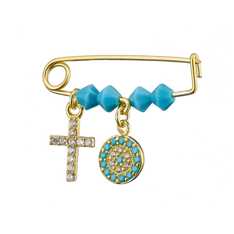 Παραμάνα ασήμι 925, επιχρυσωμένη με Σταυρό cz ματάκι & γαλάζιες πέτρες