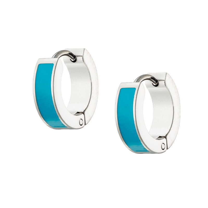 Σκουλαρίκια κρικάκια μικρά ατσάλινα 10mm με γαλάζιο σμάλτο