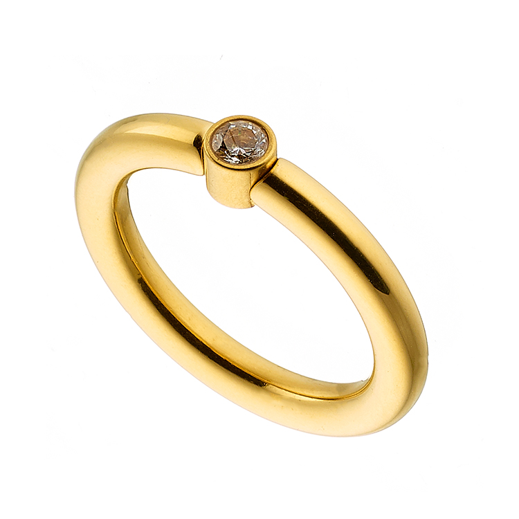 Δαχτυλίδι ατσάλινο επίχρυσο μονόπετρο με πέτρα ζιργκόν