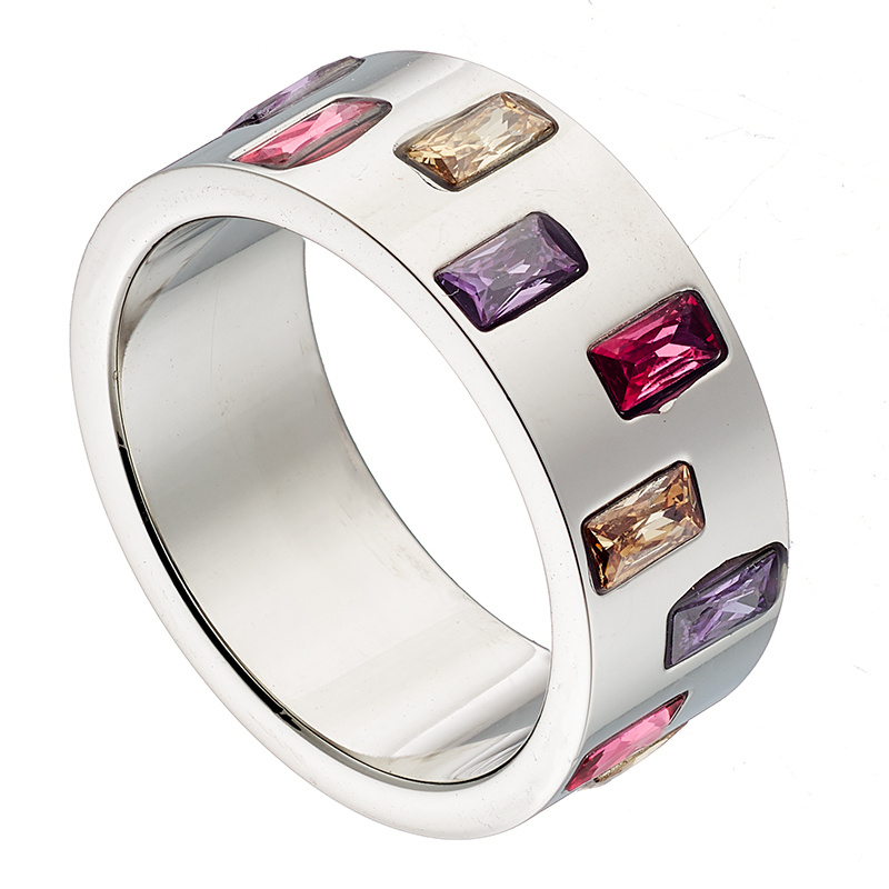 Δαχτυλίδι από ατσάλι ασημί βέρα με χρωματιστά ζιργκόν