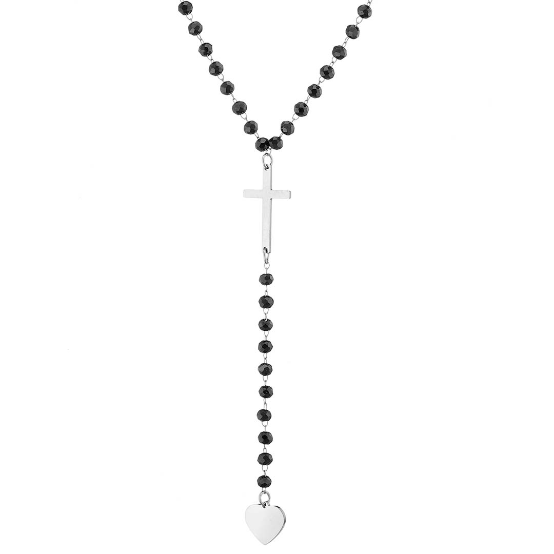 Κολιέ γυναικείο, ασημί ροζάριο με πέτρες σπινέλιο, ατσάλι 316L