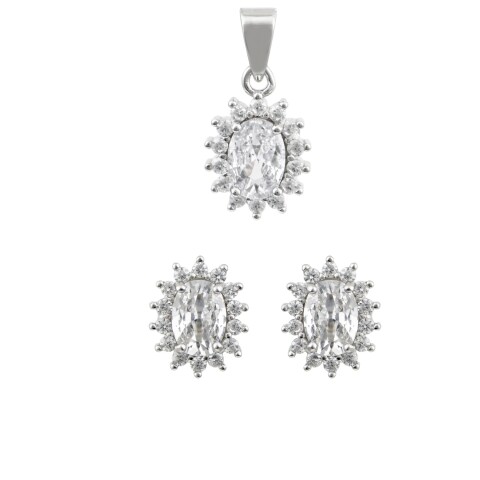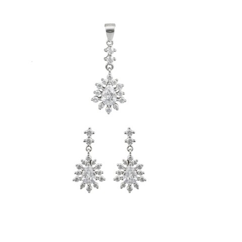 Κόσμημα set πουάρ λευκές πέτρες, Κολιέ, Σκουλαρίκια επιπλατινωμένα ασήμι 925